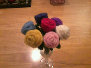 I also received a request to make a bunch of different coloured roses. I wasn't too sure that they would look good, one in each colour, I thought contrasting colours would have looked better, but, once finished I think they look great altogether.
