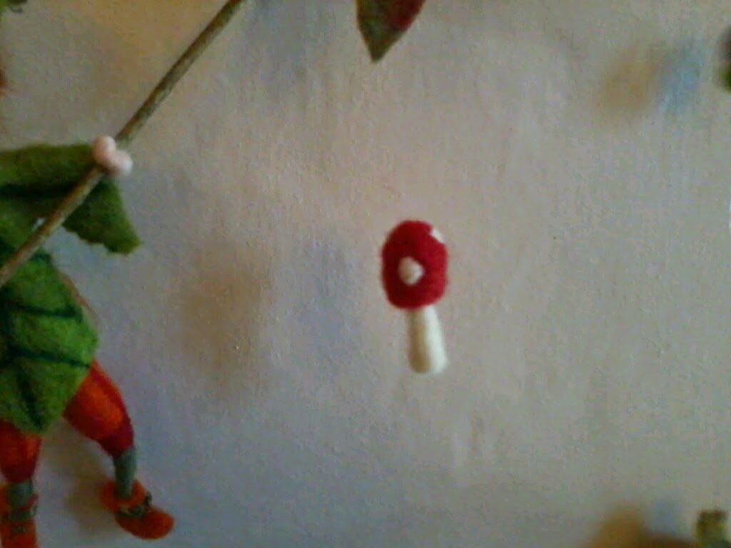 I then needle felted an Autumn Pixie & gave her awesome multi coloured hair!! I then attached all these pieces, along with some brown coloured beads to a branch using clear string.