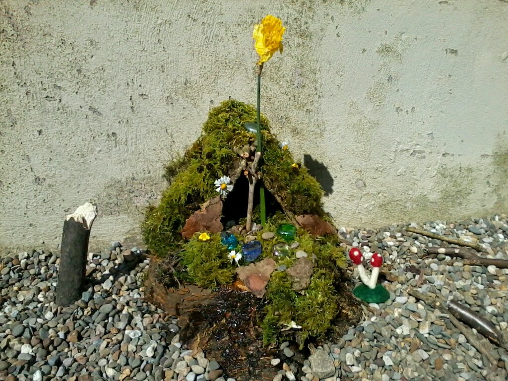 Me and my Daughter collected some natural materials from a wood nearby, sticks and moss etc and we built our very own real life fairy house! It was so much fun to make and decorate with sparkly glass stones!